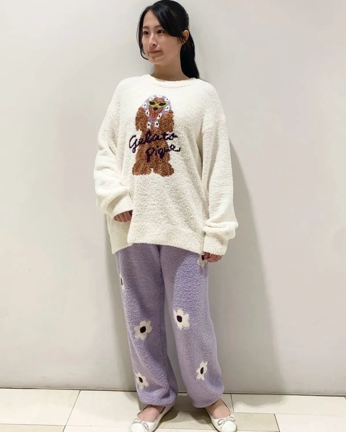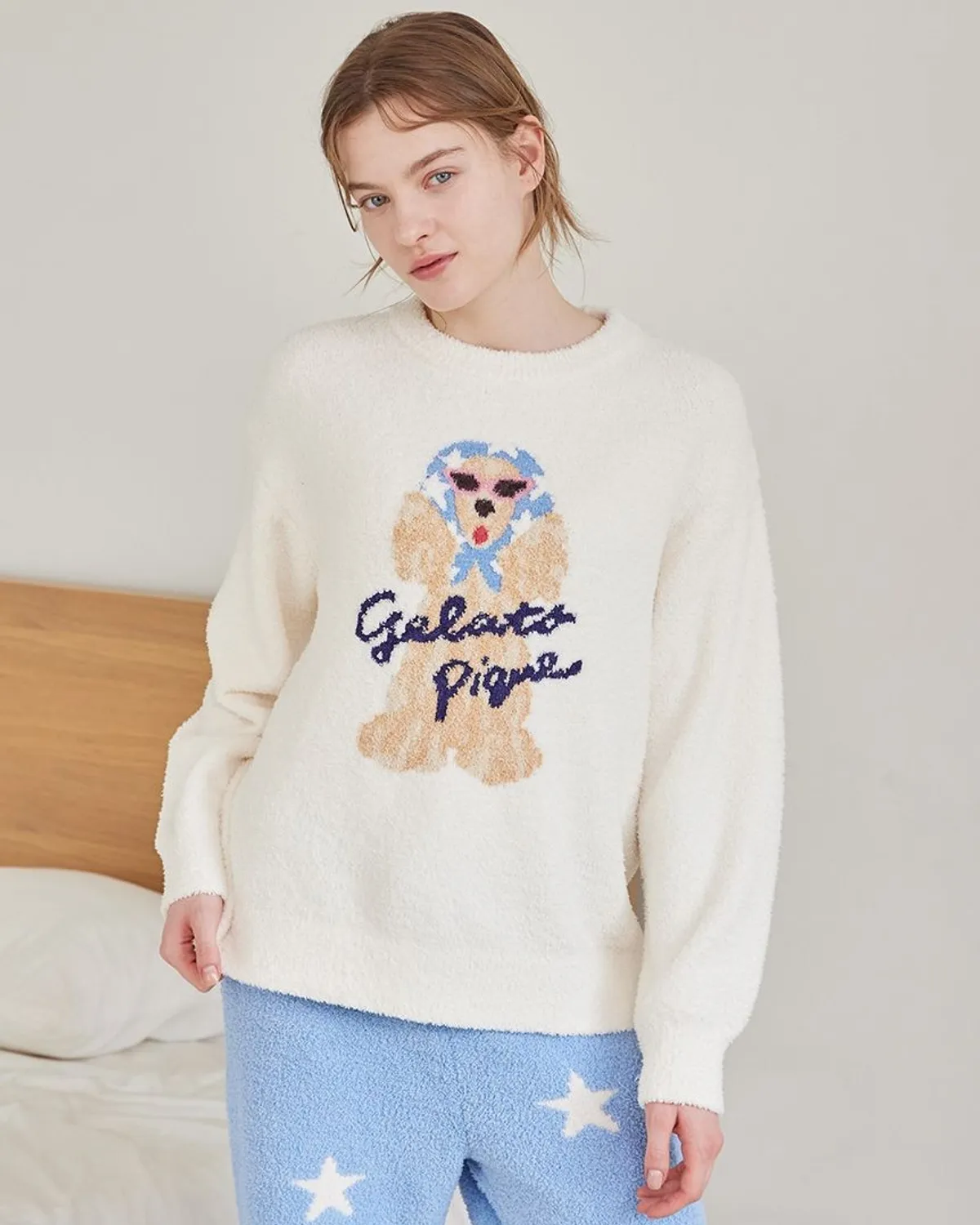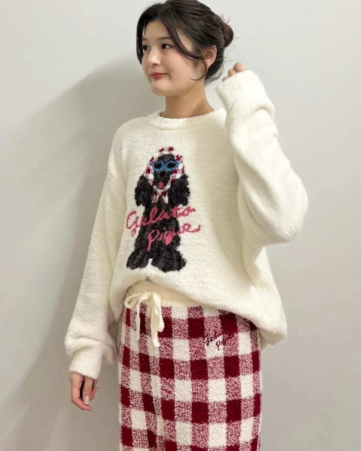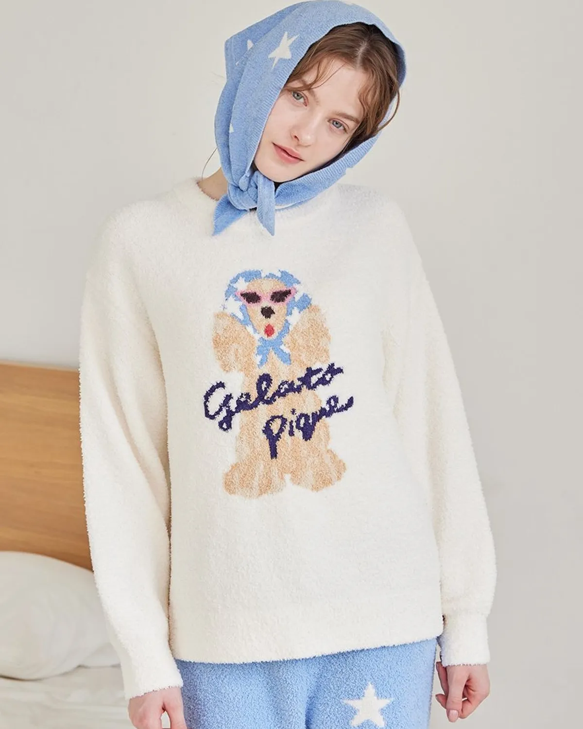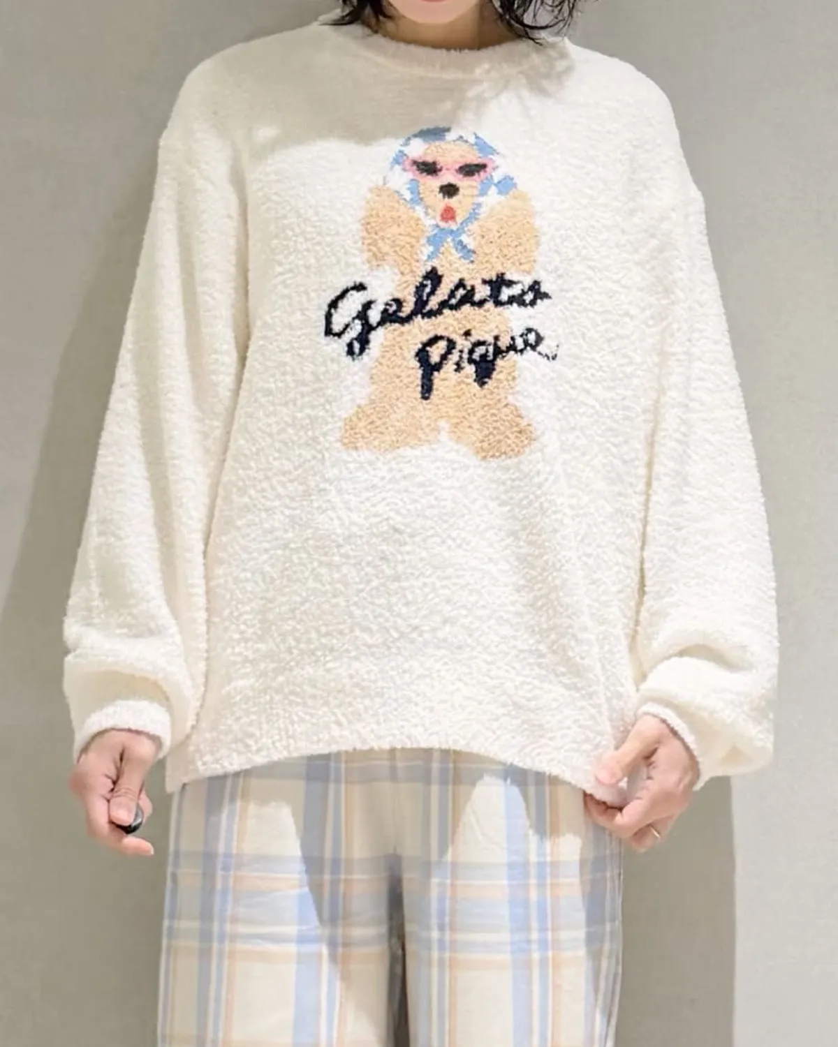 【設計/造型】這款提花針織上衣以復古流行色為主色調飾有戴著圍巾和太陽眼鏡的時尚可卡犬圖案採用柔軟保暖的針織布製成寬鬆的版型,衣身和袖子都十分寬鬆針織上衣的底色為米白色圍巾有三種顏色可選:紅色格子、藍色星星和紫色小花推薦搭配同系列的長褲和配件材質:100% 聚酯纖維 此商品為預購商品 到貨時間需等待10~21個工作天 不含假日及國定假日 ⚠️急件處理需自行負擔國際運費