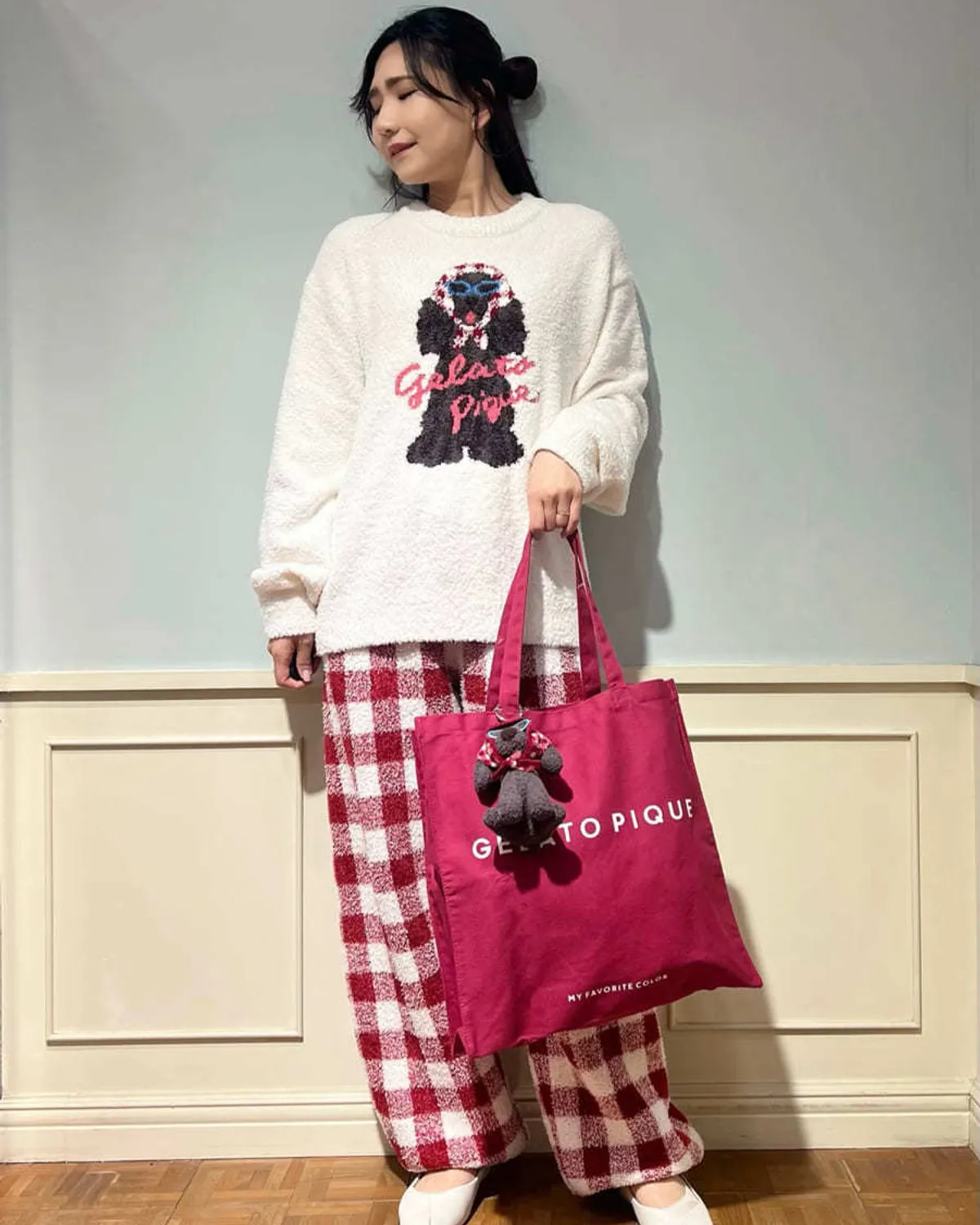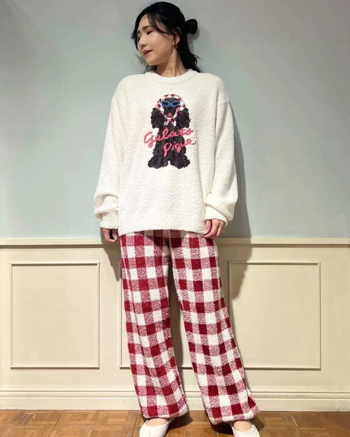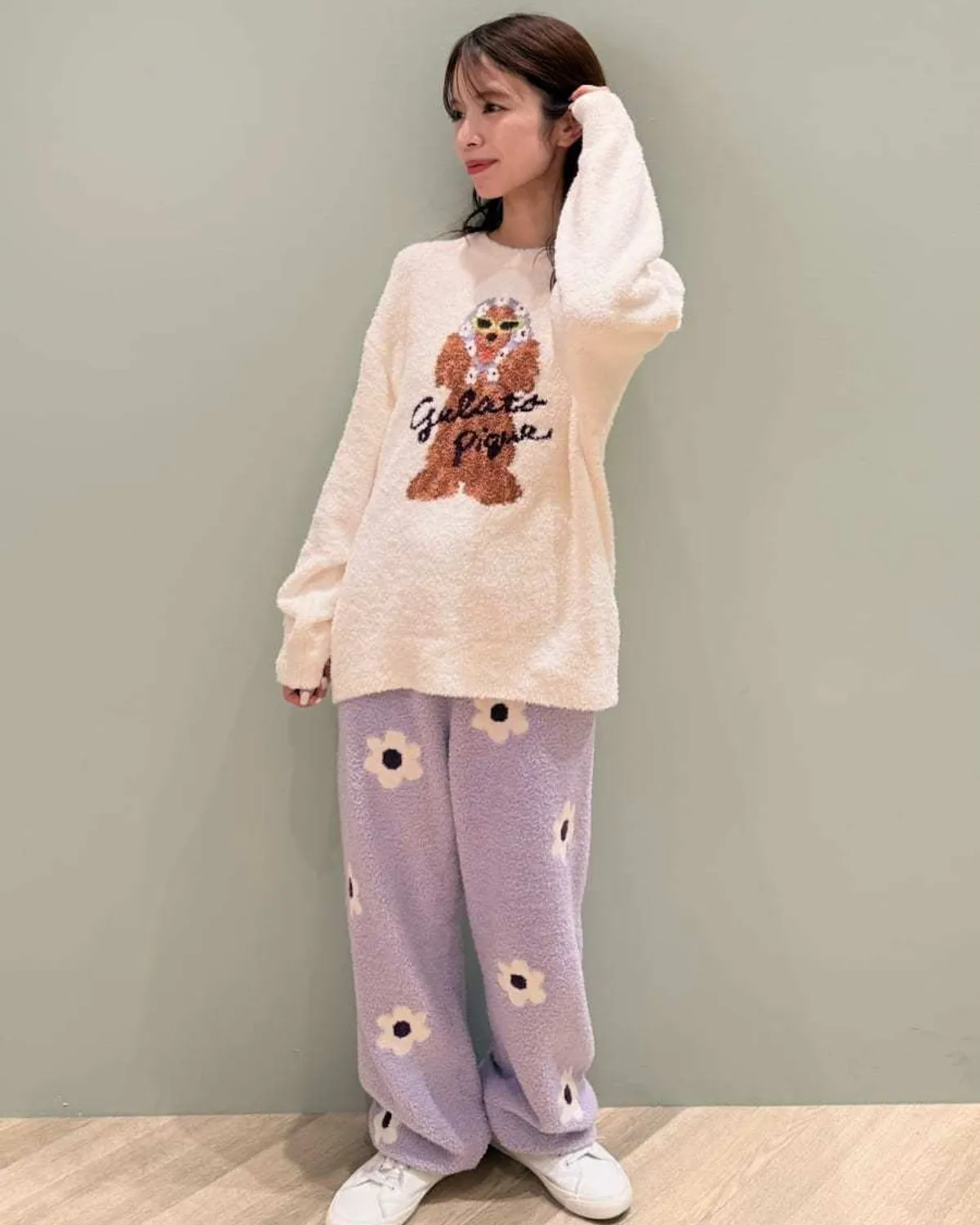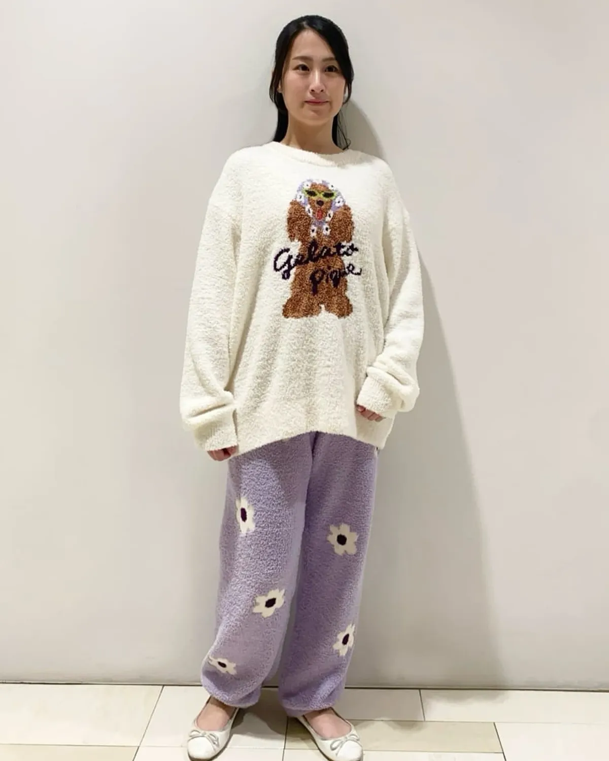 【設計/造型】這款提花針織上衣以復古流行色為主色調飾有戴著圍巾和太陽眼鏡的時尚可卡犬圖案採用柔軟保暖的針織布製成寬鬆的版型,衣身和袖子都十分寬鬆針織上衣的底色為米白色圍巾有三種顏色可選:紅色格子、藍色星星和紫色小花推薦搭配同系列的長褲和配件材質:100% 聚酯纖維 此商品為預購商品 到貨時間需等待10~21個工作天 不含假日及國定假日 ⚠️急件處理需自行負擔國際運費